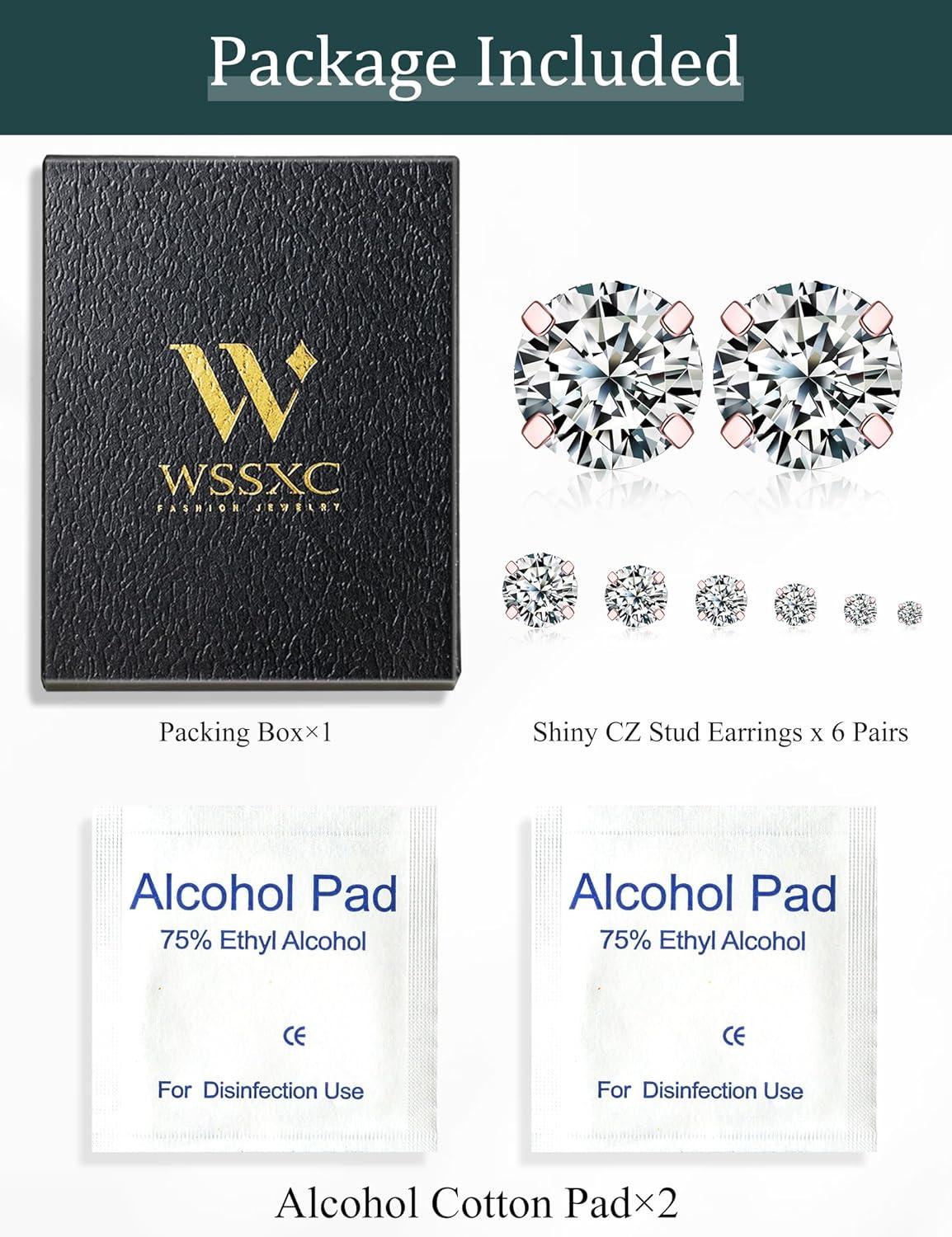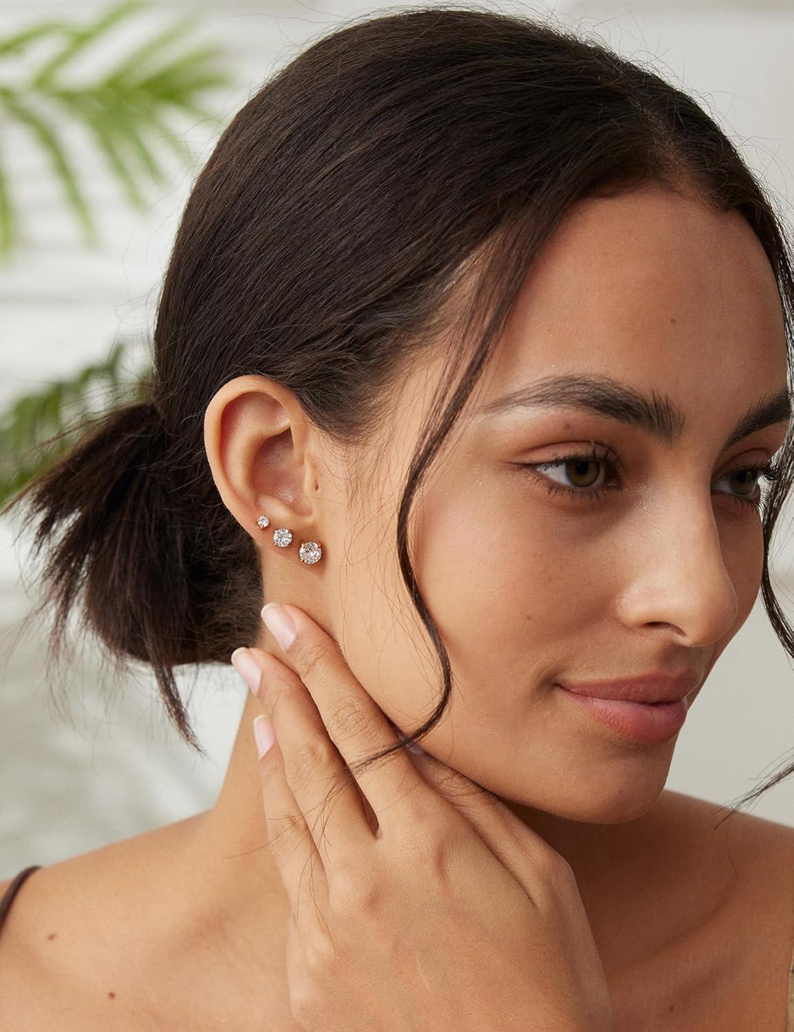 6 Pairs Stud Earrings Set, Hypoallergenic Cubic Zirconia 316L Earrings Stainless Steel CZ Earrings 3-8mm (Steel color)(A-001-silver)